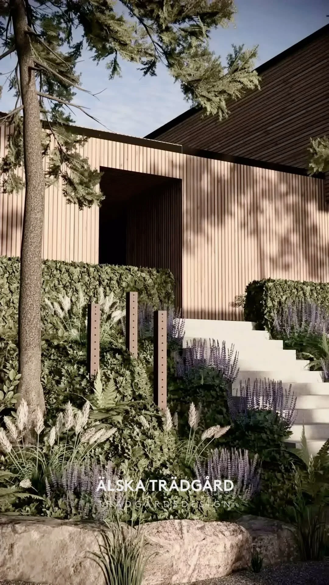 Fin skogstomt där både hus och trädgård fått sig en rejäl uppdatering. Innan, bestod trädgården mestadels av stor gräsmatta samt några mindre planteringsytor i anslutning till huvudhuset, poolen och gästhuset. När ett nytt uterum vid poolen skulle byggas önskade familjen att få in mer grönska och lummighet. Förutom att vi adderade flera växtbäddar med torktåliga perenner, träd och buskar för pollinatörer, så byggdes huset och poolområdet ihop och nya gångar gav trädgården struktur. Parallellt målades fasaden om och den gamla tennisbanan renoverades. Ljussättningen i trädgården var viktigt för att kunna uppleva och använda trädgården även på kvällarna.
