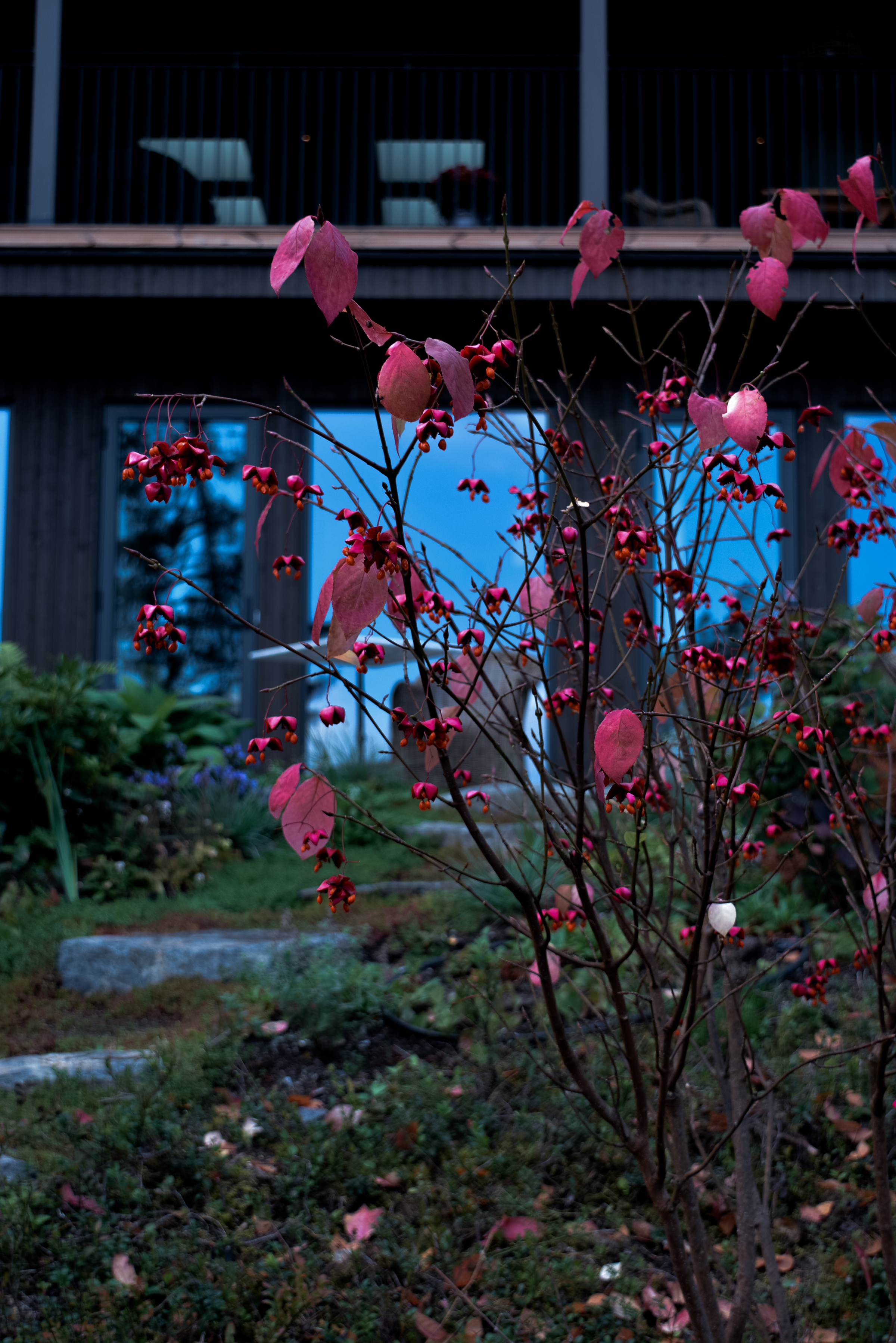 Material och ytor: Sprängsten och matjord har återanvänts till nivåskillnader, trappor och murar. Grus och skiffer har valts med omsorg och använts sparsamt, enbart där det verkligen behövs. Tillsammans minskar dessa val trädgårdens klimatavtryck och ger den ett naturligt, tidlöst uttryck.